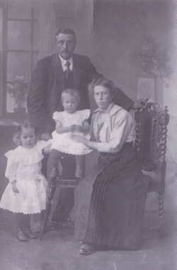 Foto van Cornelis Vermeij (1888) en Pieternella Snijders. Staand Wilhelmina Vermeij en zittend is Johanna Adriana Vermeij